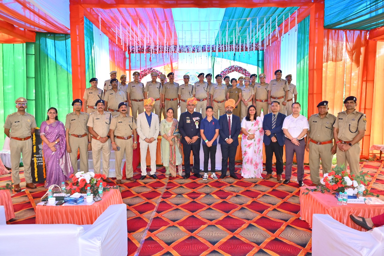 अलवर। "महावीर चक्र" से अलंकृत दिगेंद्र कुमार परसवाल और प्रसिद्ध अस्थि रोग विशेषज्ञ डॉ. राजीव गुप्ता की गौरवपूर्ण उपस्थिति में गरिमा और उत्साह से सीजीएसटी आयुक्तालय, अलवर ने 79वां स्वाधीनता दिवस समारोह धूमधाम से मनाया। सूर्यनगर स्थित सीजीएसटी आयुक्तालय, अलवर में 15 अगस्त 2025 को 79वां स्वाधीनता दिवस हर्ष, उल्लास और देशभक्ति से परिपूर्ण वातावरण में मनाया गया। सीजीएसटी आयुक्त सुमित कुमार यादव ने महावीर चक्र विजेता दिगेंद्र कुमार एवं प्रसिद्ध अस्थि रोग विशेषज्ञ डॉ. राजीव गुप्ता के साथ परेड की सलामी ले कर ध्वजारोहण किया।