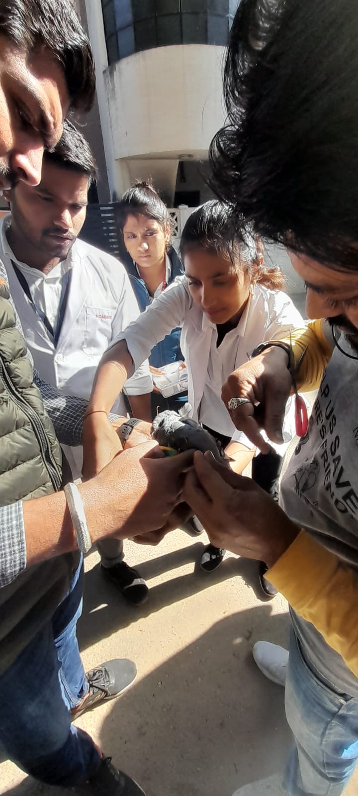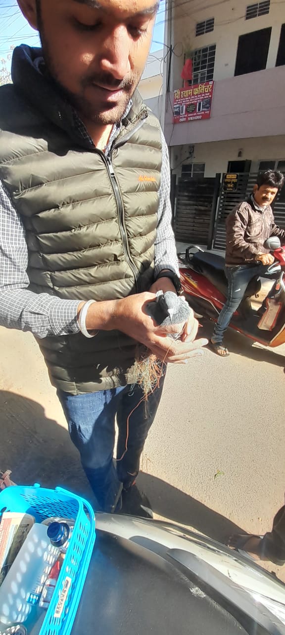 जयपुर। इंडिया इंटरनेशनल स्कूल की आठवीं कक्षा की छात्रा प्रियांशी माथुर की सजगता से मांझे में बुरी तरह फंसे पक्षी को रेस्क्यू किया गया। दरअसल मकर संक्रांति के दूसरे दिन रविवार सुबह मानसरोवर में अपने घर की बॉलकनी में अखबार पढऩे बैठी प्रियांशी को अचानक कुछ दूरी पर तारों के बीच कुछ हिलता सा नजर आया। गौर से देखने पर तारों में उलझे मांझे फंसा कबूतर तड़पता नजर आया। उसने तुरंत अपने ताऊजी व पापा को बताया। ऊंचाई ज्यादा होने के कारण कबूतर को उतारना मुश्किल था। इसलिए तुरंत पक्षी हैल्पलाइन को सूचित किया गया। पक्षियों को बचाने वालों की सजगता भी देखिए, कुछ ही मिनटों में दायित्व एक संकल्प टीम से करण अपने साथी के साथ आ गए। वहीं नेचर केयर बर्ड रेस्क्यू टीम के चार युवा साथी पूरे इंतजाम के साथ आ गए। दोनों संगठनों के युवा कार्यकर्ताओं ने कई मिनटों तक कबूतर के पंखों में फंसे मांझे के गुच्छों को काटकर निकाला। साथ ही घावों पर दवा लगाई गई। रेस्क्यू टीम का कहना था कि यदि 15-20 मिनट भी यह कबूतर ऐसे फंसा रहता तो इसकी मौत हो सकती थी। आखिर इस छोटे से पक्षी में जान ही कितनी होती है। सभी ने इस पुनीत कार्य के लिए एक-दूसरे को धन्यवाद दिया। रेस्क्यू करने के बाद कबूतर को रिलीज करने का प्रयास किया गया, लेकिन उस समय वो उड़ान नहीं भर सका। इसलिए नेचर केयर बर्ड रेस्क्यू टीम उसे अपने साथ लेकर चली गई। एक-दो दिन बाद पूरी तरह सही होने पर उसे रिलीज किया जाएगा।