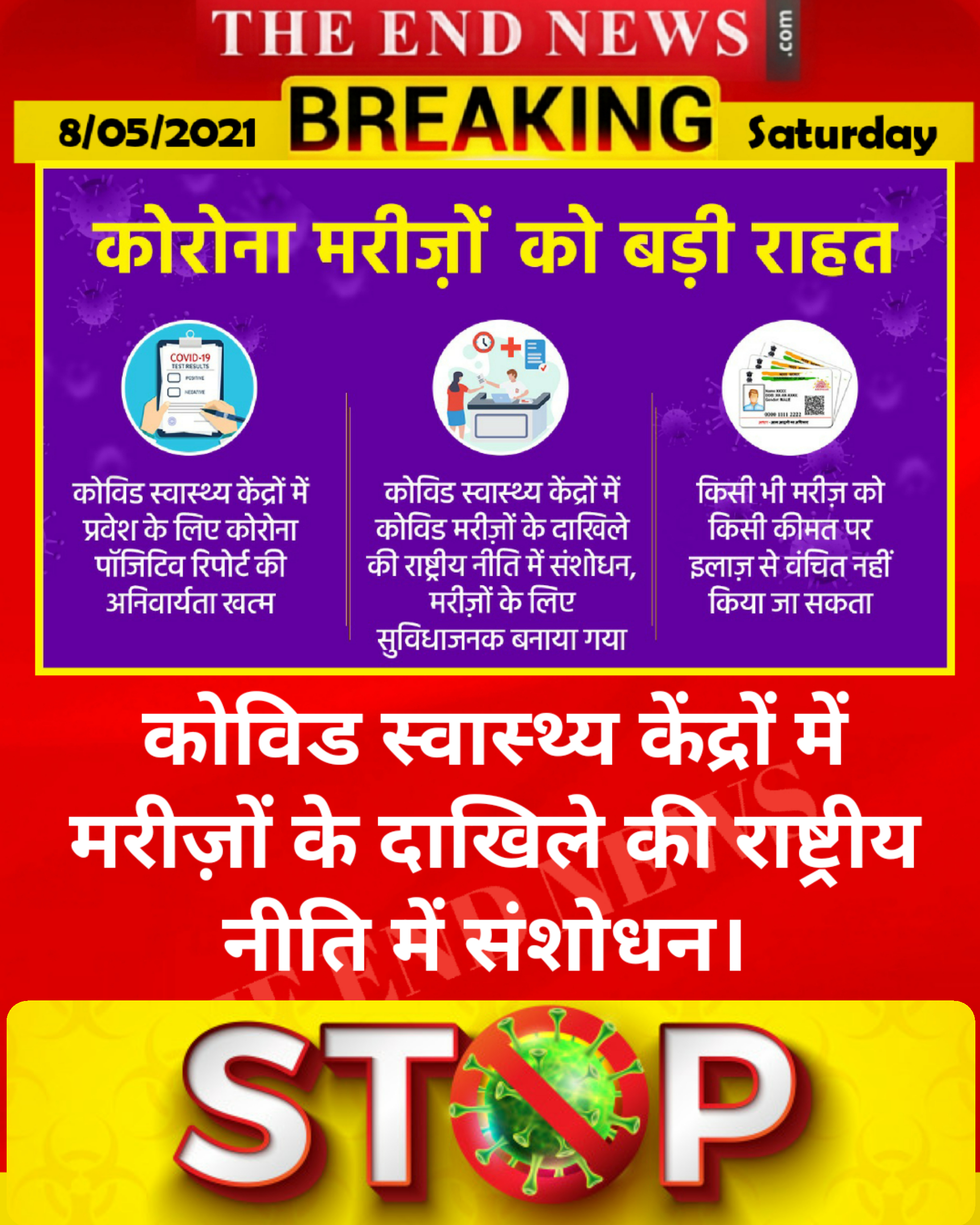 2- कोविड स्वास्थ्य केंद्रों में प्रवेश के लिए कोरोना पॉजिटिव रिपोर्ट की अनिवार्यता खत्म