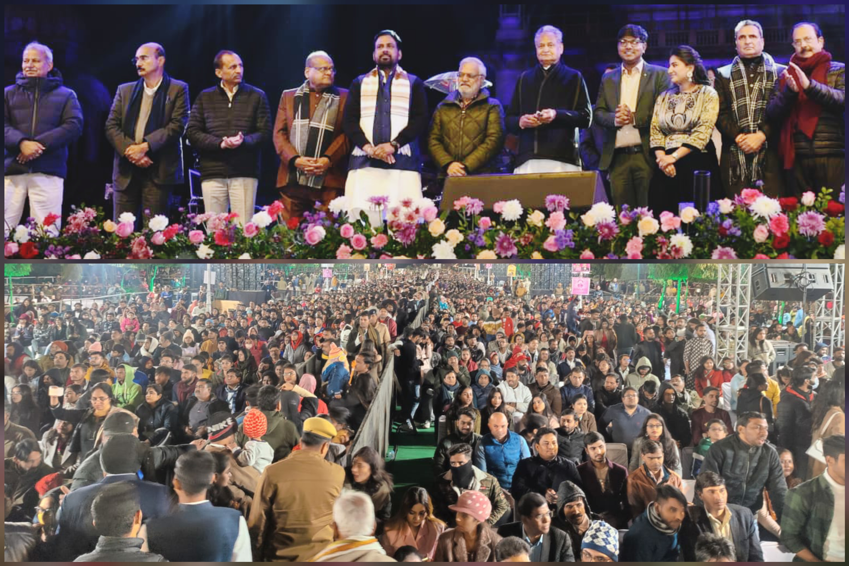 इसके बाद उन्होंने स्टेज पर एंट्री ली और देशी बॉयज…, हुक्का बार… जैसे गानों पर परफॉर्मकिया। जयपुराइट्स में लगी रही सेल्फी लेने की होड़ भारती के साथ स्टेज से लेकर भीड़ तक सेल्फी लेने की होड़ मची रही। एक्ट्रेस ने भी किसी को निराश नहीं किया और जमकर फोटोज क्लिक कराई। भीड़ ज्यादा होने से स्टेज पर सिक्योरिटी बुलाकर सेल्फ का दौर थामना पड़ा। समापन सलीम-सुलेमान के साथ शाम का समापन सलीम-सुलेमान की परफॉर्मेंस से हुआ। उनके इंतजार में हर उम्र के लोग खड़े रहे और जैसे ही दोनों भाइयों ने स्टेज पर एंट्री ली तो उनका जोश दोगुना हो गया। सिंगर्स ने कु र्बान हुआ…, गीत से शुरुआत की और फिर ए खुदा मुझको बता… चक द इंडिया… जैसे गीतों से समां बांध दिया।