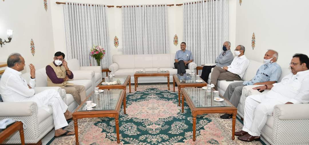 जयपुर। राजस्थान के मुख्यमंत्री आवास पर केन्द्रीय स्वास्थ्य एवं परिवार कल्याण तथा रसायन एवं पेट्रो-केमिकल मंत्री मनसुख मंडाविया ने CM गहलोत से मुलाकात की।