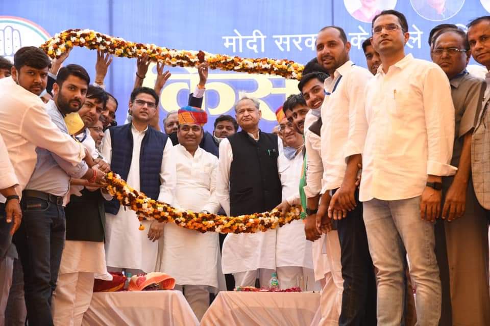 जयपुर. राजस्थान कांग्रेस ने शनिवार को चित्तौड़गढ के मातृकुंडिया और बीकानेर के श्रीडूंगरगढ के पास धनेरू में किसान सम्मेलन से उपचुनाव के प्रचार का आगाज किया. इसके साथ ही यह भी राजनीतिक मैसेज देने का प्रयास किया गया कि गहलोत और पायलट एक हैं. और कांग्रेस में बिना गुटबाजी की बात किए सभी को एकजुट होकर राजस्थान की चार विधानसभा सीटों पर होने वाले उपचुनाव में साथ रहने का संदेश दिया.