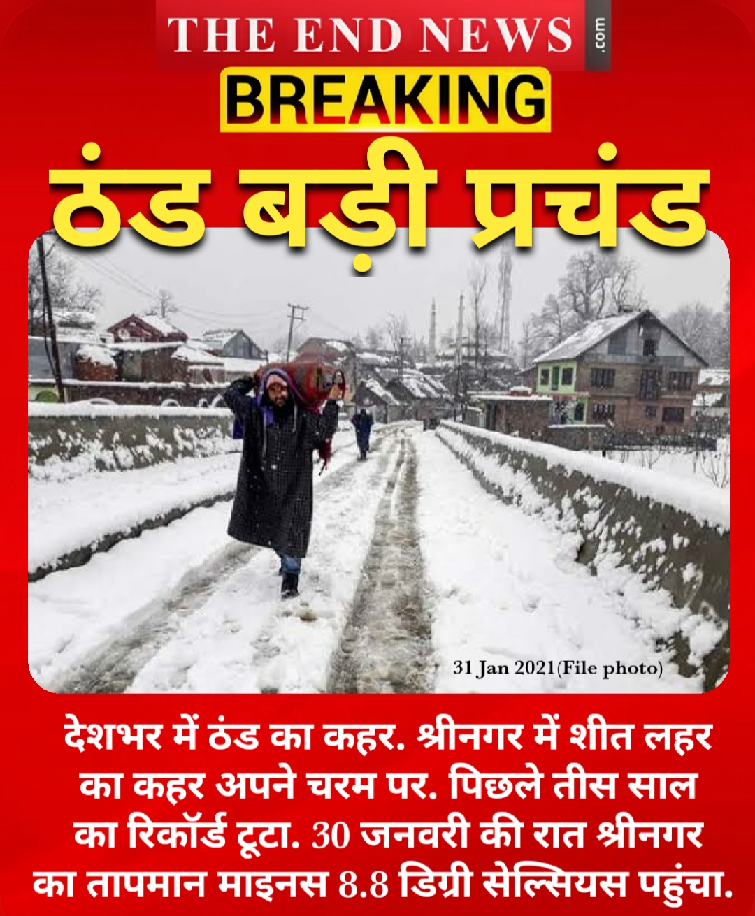 जम्मू कश्मीर (Jammu Kashmir) में इन दिनों पड़ रही कड़ाके की ठंड ने पिछले 30 साल के रिकॉर्ड तोड़ दिए हैं. बड़ी बात यह है कि इस ठंड के कारण जम्मू-कश्मीर में अघोषित कर्फ्यू से हालात सड़कों पर नजर आ रहे हैं. लोग ठंड से बचने के लिए घरों में अलाव का और अन्य संसाधनों का सहारा ले रहे हैं. इस कड़ाके की ठंड में बचाव के लिहाज से सड़कों पर लोगों की संख्या काफी कम है.खासकर पहाड़ी इलाकों में लोग सतर्क हो गए हैं. कड़ाके की ठंड पड़ रही है. पहाड़ों पर बर्फबारी के कारण घाटी (Kashmir Valley) में सर्द हवाओं के कारन तापमान माइनस में चला गया है. शनिवार-रविवार के बीच की रात श्रीनगर (Srinagar) में पिछले 30 साल की सबसे सर्द रात रही. मौसम विभाग की मानें तो शहर में 1991 के बाद सबसे कम तापमान माइनस 8.8 डिग्री सेल्सियस रिकॉर्ड किया गया है. जिसके बाद मौसम विभाग ने अलर्ट भी जारी कर दिया है.