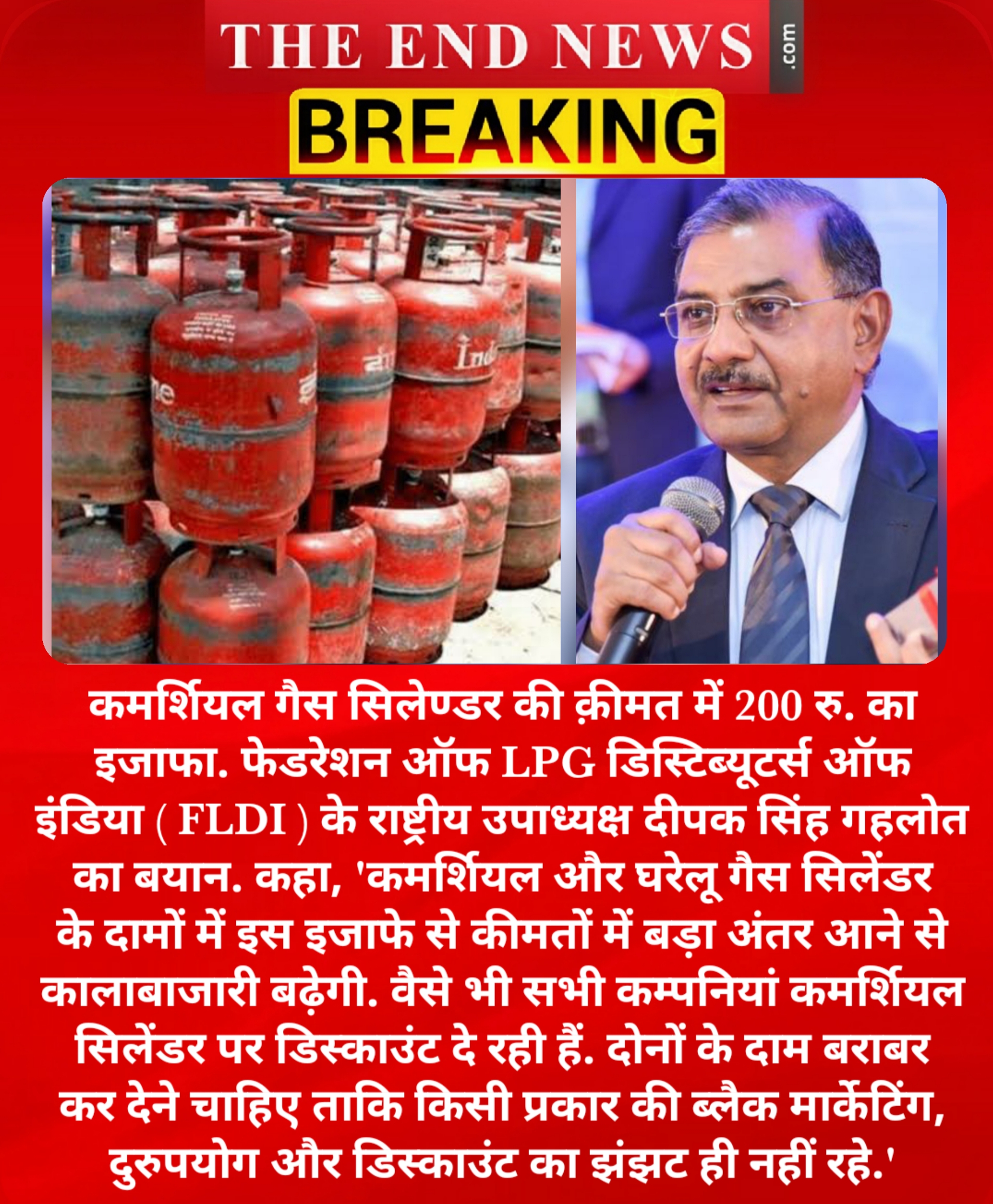 उधर फेडरेशन ऑफ LPG डिस्टिब्यूटर्स ऑफ इंडिया (FLDI) के राष्ट्रीय उपाध्यक्ष दीपक सिंह गहलोत का कहना है कि कमर्शियल गैस सिलेंडर और घरेलू गैस सिलेंडर के दामों में इस इजाफे के बाद कीमतों में बड़ा अंतर आ जाएगा जिससे घरेलू गैस सिलेंडर की कालाबाजारी और उसका दुरुपयोग बढ़ने की पूरी-पूरी आशंका है. इस लिहाज से पेट्रोलियम कंपनियों को तुरंत इन कीमतों को बैलेंस रखने पर ध्यान देने की जरूरत है. बता दें कि जहां घरेलू LPG गैस की कीमत 49.40 per Kg. है वहीं कमर्शियल गैस के दाम 82.05 per Kg. हो गए हैं जो कि कीमतों में एक बड़ा अंतर है.