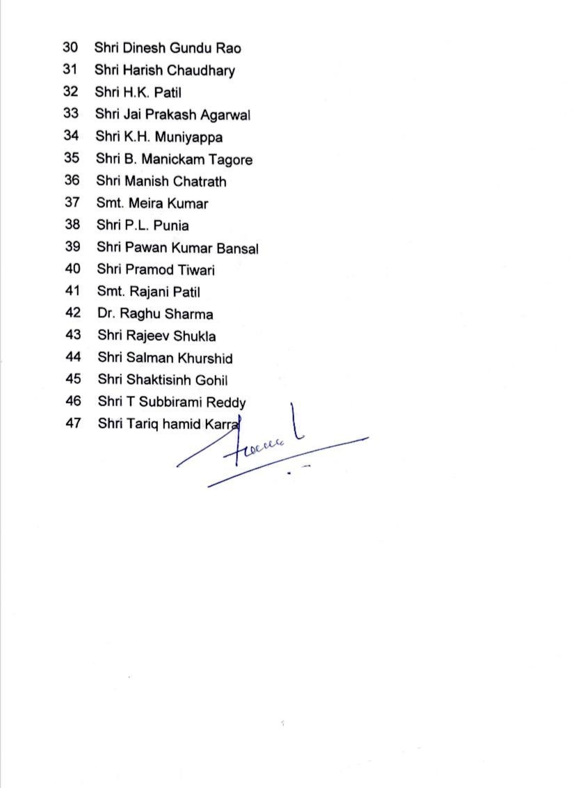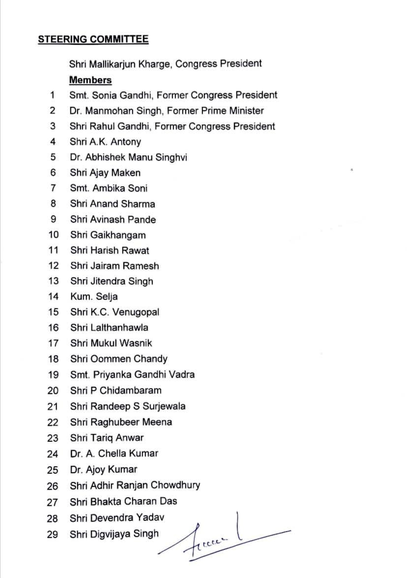 राजस्थान से भंवर जितेंद्र सिंह, रघु शर्मा, हरीश चौधरी और रघुवीर मीणा को इसमें शामिल किया गया है। गौरतलब है कि मल्लिकार्जुन खड़गे के कांग्रेस अध्यक्ष के रूप में पदभार ग्रहण पर सोनिया गांधी ने कहा था कि उन्हें "राहत" महसूस हुई है, इस पद पर उन्होंने लगभग 23 वर्षों तक कार्य किया है. सोनिया गांधी ने कहा, "मैंने अपनी पूरी क्षमता से अपना कर्तव्य निभाया. आज, मैं इस जिम्मेदारी से मुक्त हो जाऊंगी. मेरे कंधे से एक भार उतर गया है. मुझे राहत की अनुभूति हो रही है." उन्होंने कहा, "यह एक बड़ी जिम्मेदारी थी, अब जिम्मेदारी मल्लिकार्जुन खड़गे पर है." इससे पहले खड़गे के शपथ ग्रहण समारोह में कई दिग्गज कांग्रेस नेता शामिल हुए। गांधी परिवार भी इस दौरान मौजूद रहा।