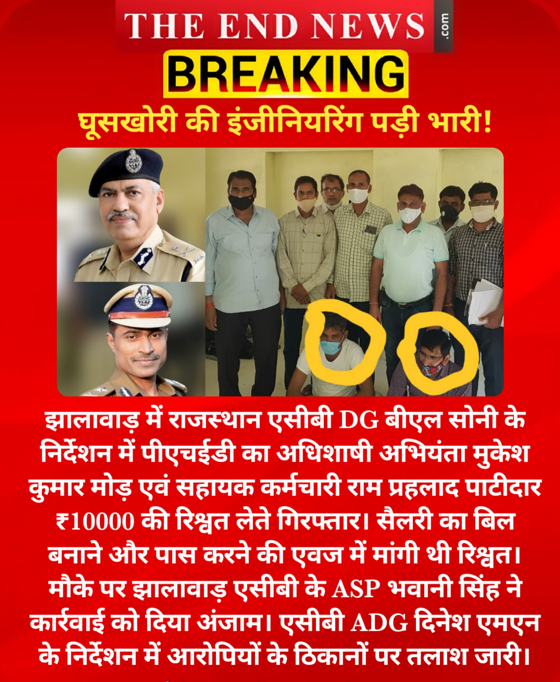 मौके पर झालावाड़ एसीबी के ASP भवानी सिंह ने इस कार्रवाई को अंजाम दिया। एसीबी ADG दिनेश एमएन के निर्देशन में आरोपियों के ठिकानों पर तलाश जारी है।