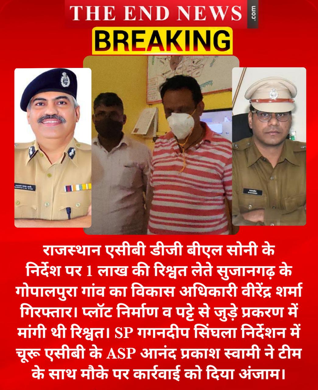 जिसके बाद इसका सत्यापन कर ACB के SP गगनदीप सिंघला के निर्देशन में चूरू एसीबी के ASP आनंद प्रकाश स्वामी ने टीम के साथ मौके पर कार्रवाई को दिया अंजाम दिया और रिश्वतखोर ग्राम विकास अधिकारी को रंगे हाथों ट्रैप किया।