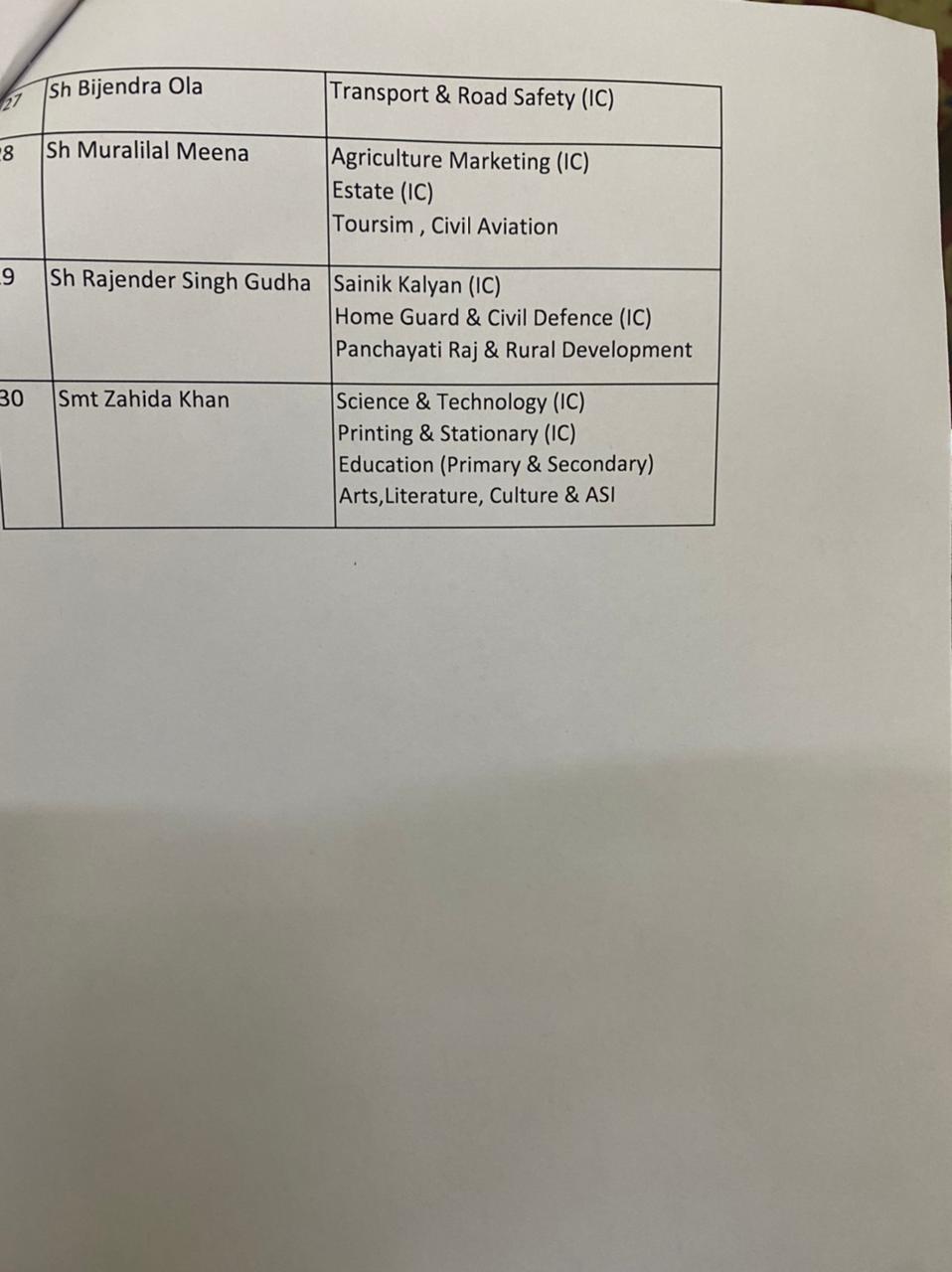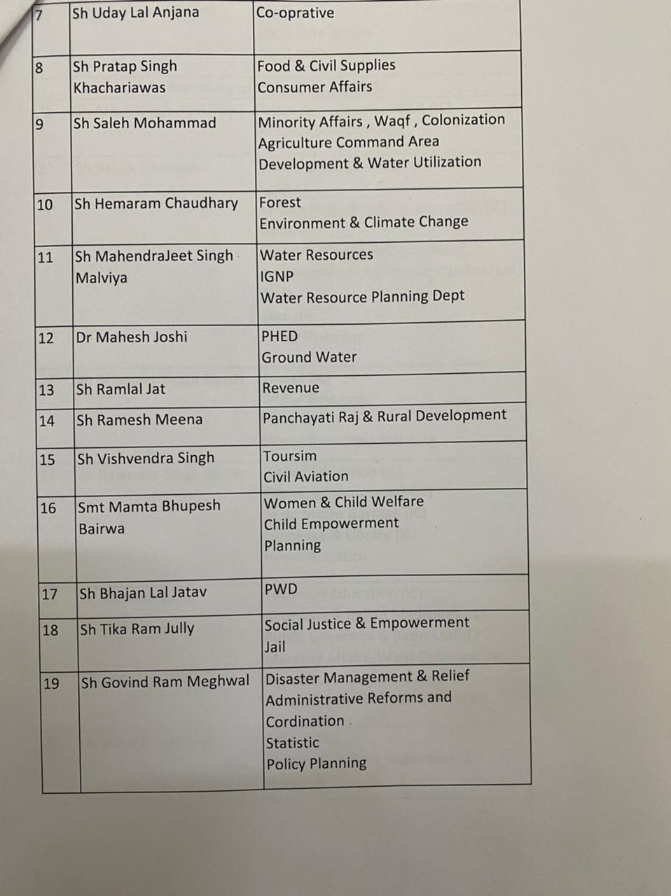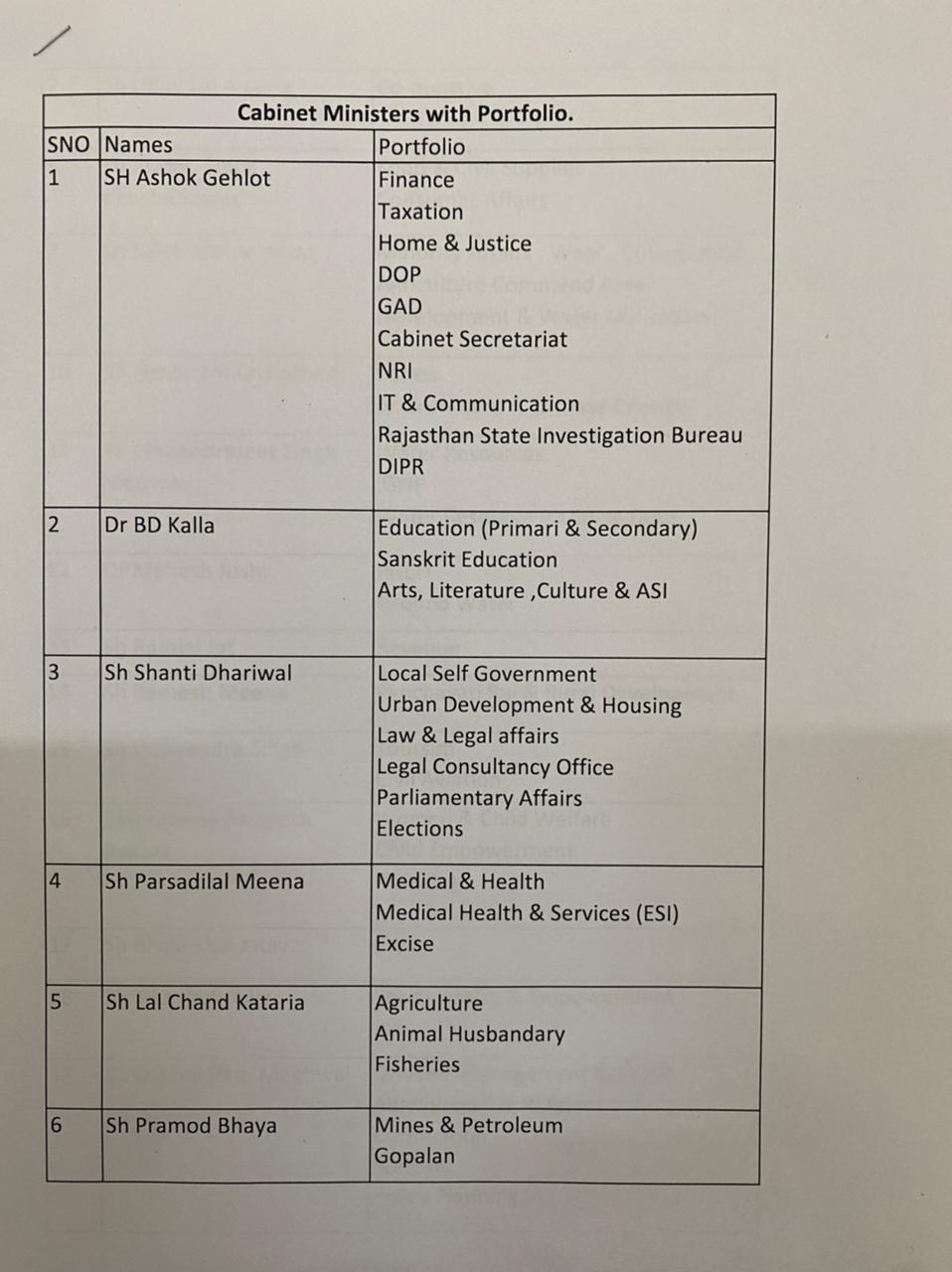 राजस्थान में किस मंत्री को कौन सा विभाग मिला यहां देखें लिस्ट