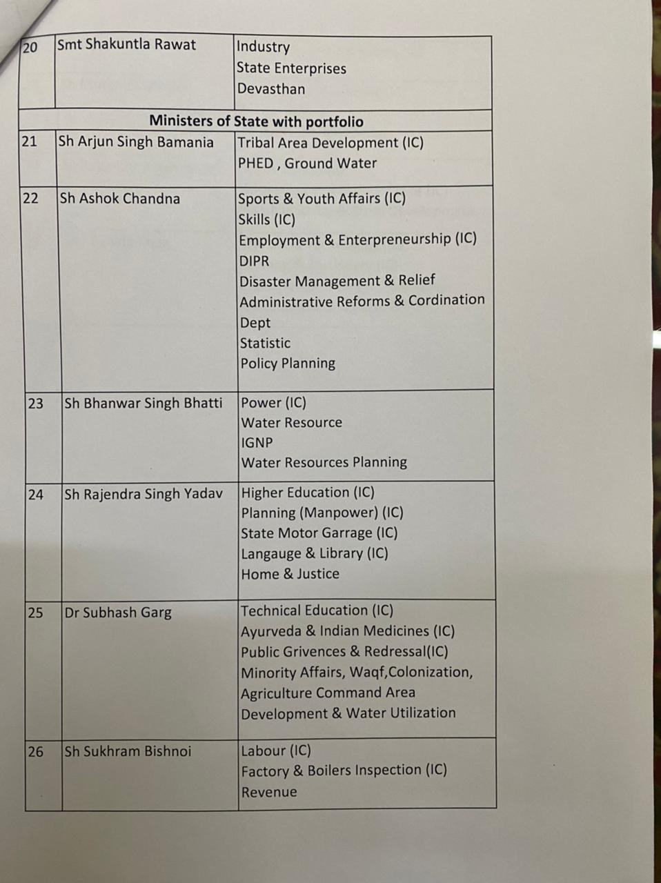 29.राजेंद्र सिंह गुढ़ा: सैनिक कल्याण, होम गार्ड एंड सिविल डिफेंस (स्वतंत्र प्रभार), पंचायती राज व रूरल डेवलपमेंट (राज्य मंत्री)