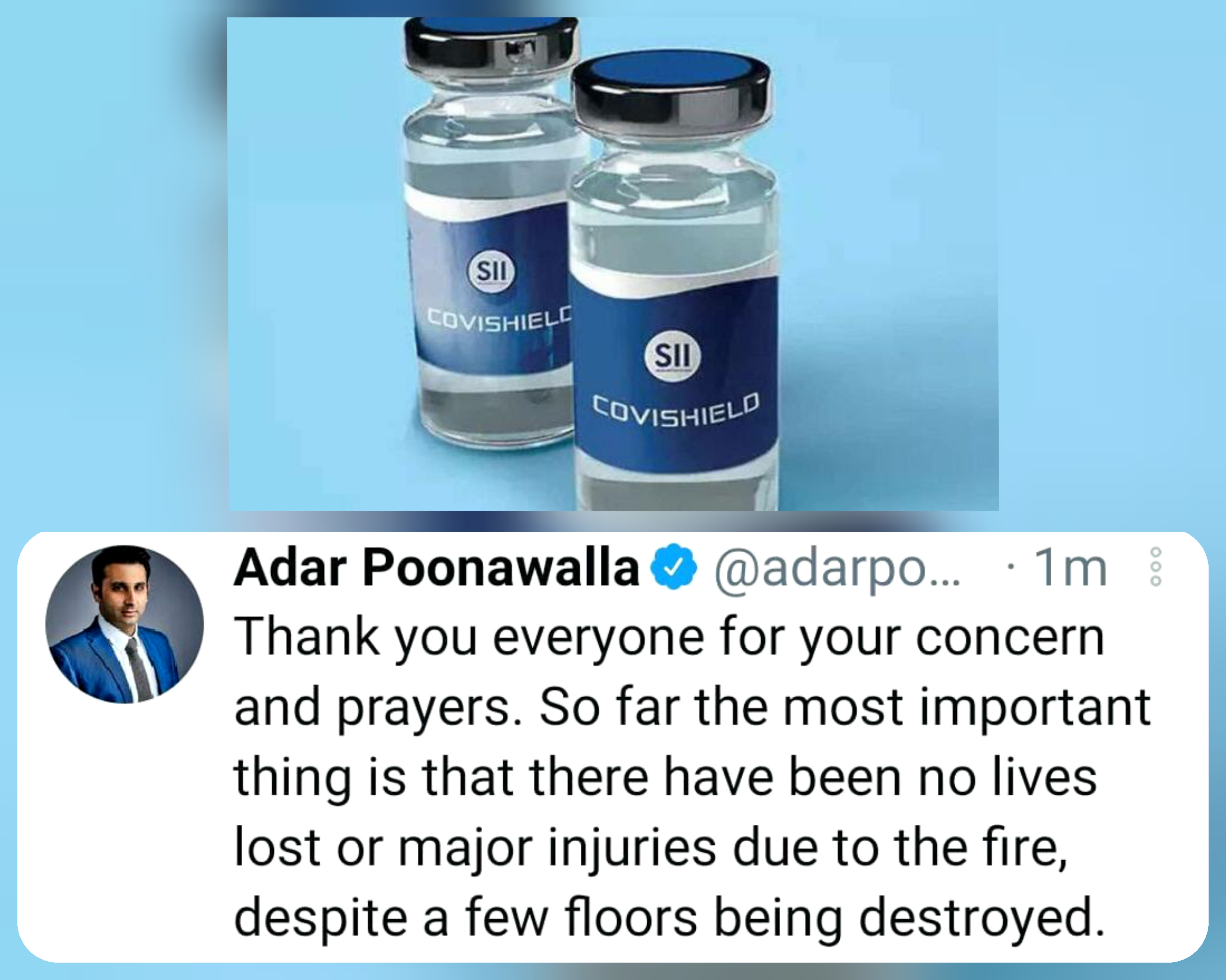 दुनिया के सबसे बड़े वैक्सीन निर्माताओं में से एक सीरम इंस्टीट्यूट ऑफ इंडिया में जहां कोरोना की वैक्सीन तैयार की जा रही है वो जगह पूरी तरह सुरक्षित है. यह आग एक निर्माणाधीन बिल्डिंग में लगी है और इससे वैक्सीन निर्माण पर कोई असर नहीं पड़ा है.
