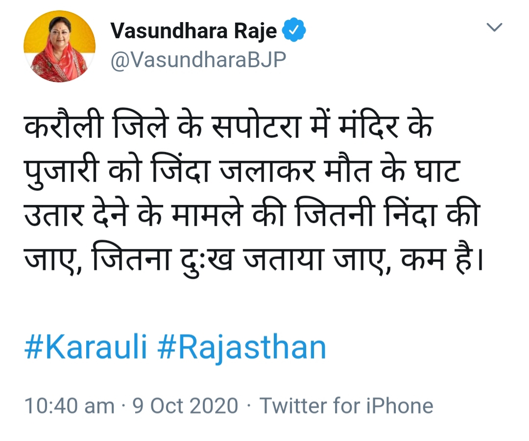 पूर्व मुख्यमंत्री वसुंधरा राजे ने भी इस घटना की निंदा की है.
