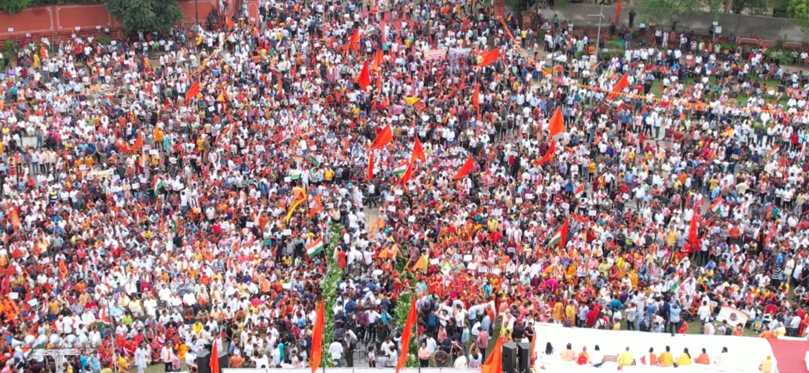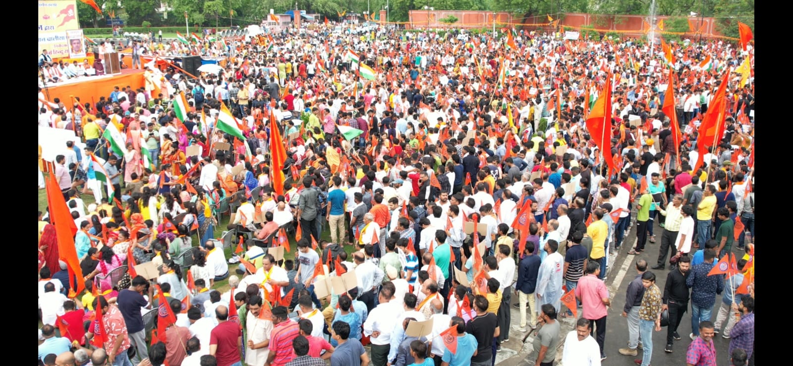 प्रदर्शन में लोग भगवा झंडा लेकर शामिल हुए। इस दौरान जयश्री राम के नाम का उद्घोष किए गए। इसके साथ ही 'मदरसे बंद करो', 'पीएफआई पर ताला', 'राजस्थान का तालिबानीकरण बंद हो' जैसे नारे लगे। बड़ी संख्या में साधु-संत भी सभा में पहुंचे और जिन्होंने हिंदू को एकीकृत करने पर जोर दिया।