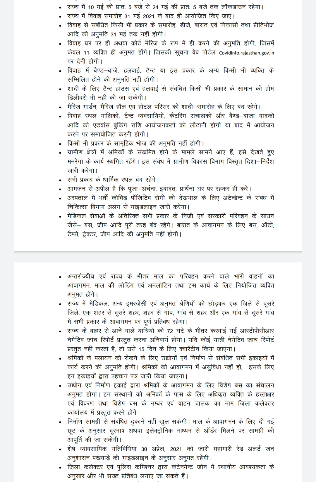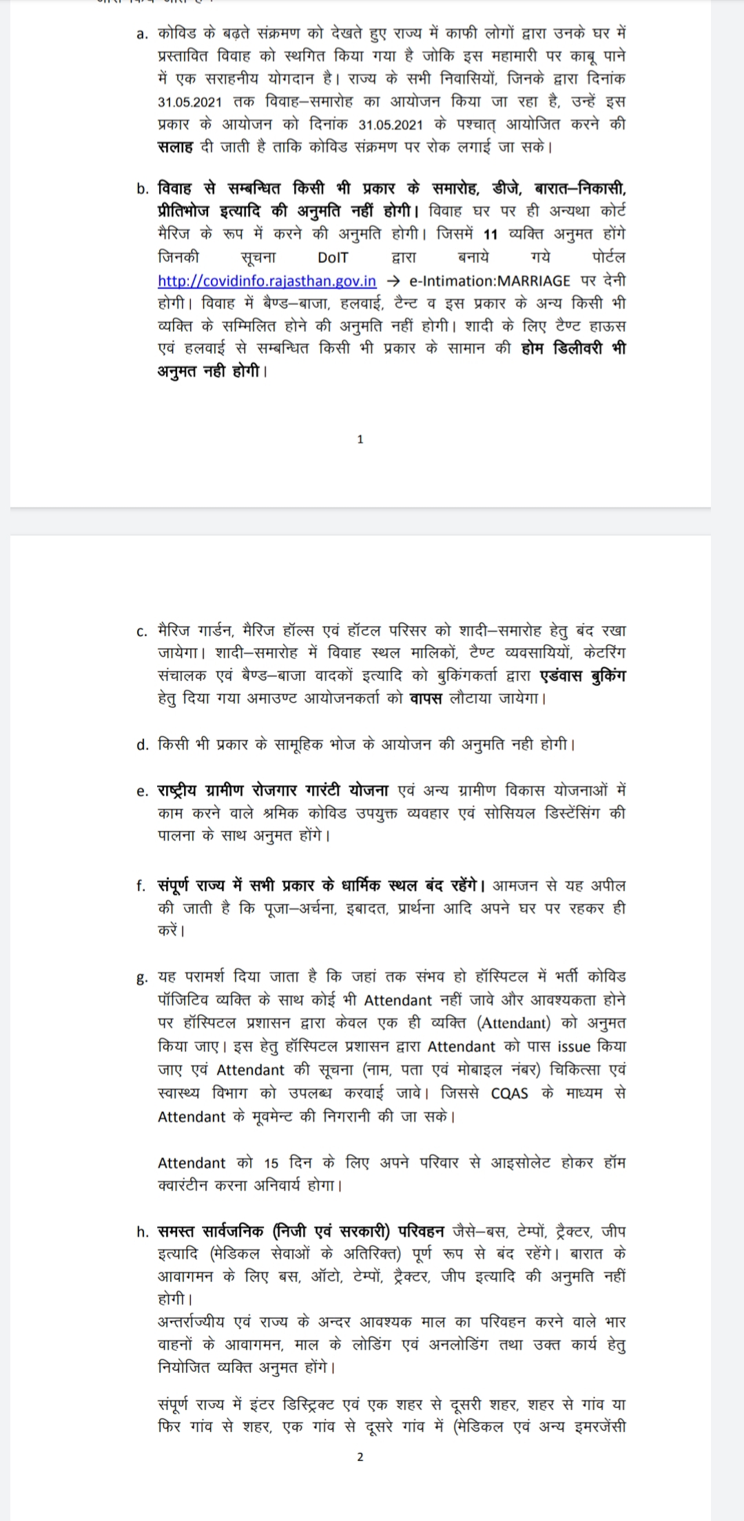 विवाह घर पर ही या कोर्ट में हो सकेंगे। 11 से ज्यादा लोग एकत्र इन विभाग कार्यक्रमों के दौरान नहीं हो सकेंगे। डीजे बजाने पर पूरी तरह से रोक होगी।