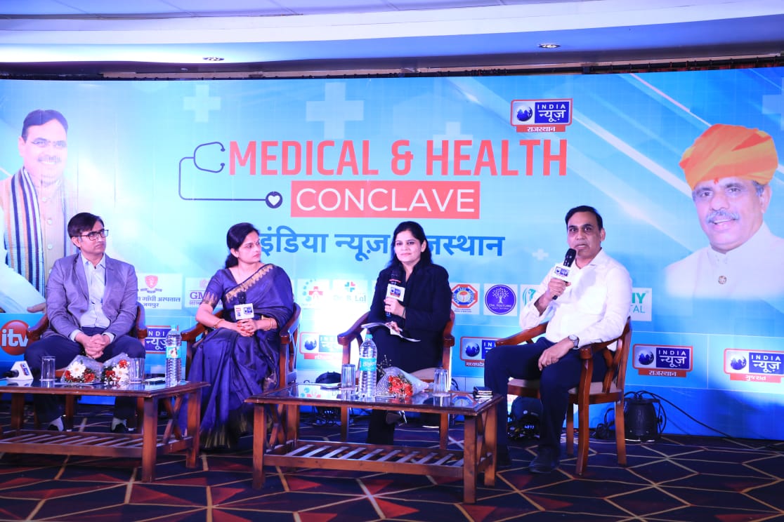 इंडिया न्यूज राजस्थान की ओर से मेडिकल एंड हेल्थ कॉन्क्लेव का आयोजन जयपुर के ऑफिसर्स कैम्पस में आयोजित हुआ। इसमें राजस्थान की चिकित्सा जगत से जुड़ी कई दिग्गज हस्तियों ने शिरकत की। राजस्थान के चिकित्सा एवं स्वास्थ्य मंत्री गजेन्द्र सिंह ने उत्कृष्ठ सेवाएं प्रदान करने वाले चिकित्सकों को सम्मानित किया। इंडिया न्यूज राजस्थान के डायरेक्टर यादवेंद्र सिंह, स्टेट एडिटर मनु शर्मा के निर्देशन में आयोजित इस कार्यक्रम में चिकित्सा मंत्री गजेन्द्र सिंह खींवसर, आरयूएचएस के वाइस चांसलर डाॅ. सुधीर भंडारी, एसएमएस मेडिकल कॉलेज के प्राचार्य डॉ. राजीव बगरहट्टा और एसएमएस अस्पताल के अधीक्षक डॉ. अचल शर्मा, गीतांजील मेडिकल काॅलेज एण्ड हाॅस्पिटल के चैयरपर्सन जे.पी. अग्रवाल, न्यूरो केयर अस्पताल के डायरेक्टर डॉ. एनसी पूनियां, महात्मा गांधी अस्पताल के ऑर्थोपेडिक सर्जन डॉ. संदीप यादव, नेशनल इंस्टिट्यूट ऑफ आयुर्वेद के डॉ. आर. के. जोशी, डॉक्टर बी. लाल क्लिनिकल लेबोरेट्री के डायरेक्टर संकल्प गुप्ता, एसएमएस अस्पताल के सीनियर सर्जन डाॅ. प्रवीण जोशी और टांसफ्यूजन एक्सपर्ट डॉ. सरिता शर्मा, डॉक्टर नेचर वेलनेस सेंटर के डायरेक्टर डॉ. टी.पी. तिवारी, हौम्योपेथी चिकित्सा विशेषज्ञ डाॅ. राजीव नागर सहित कई स्वास्थ्य विशेषज्ञों ने चिकित्सा और स्वास्थ्य से जुड़े विभिन्न विषयों पर अपनी बात रखी।