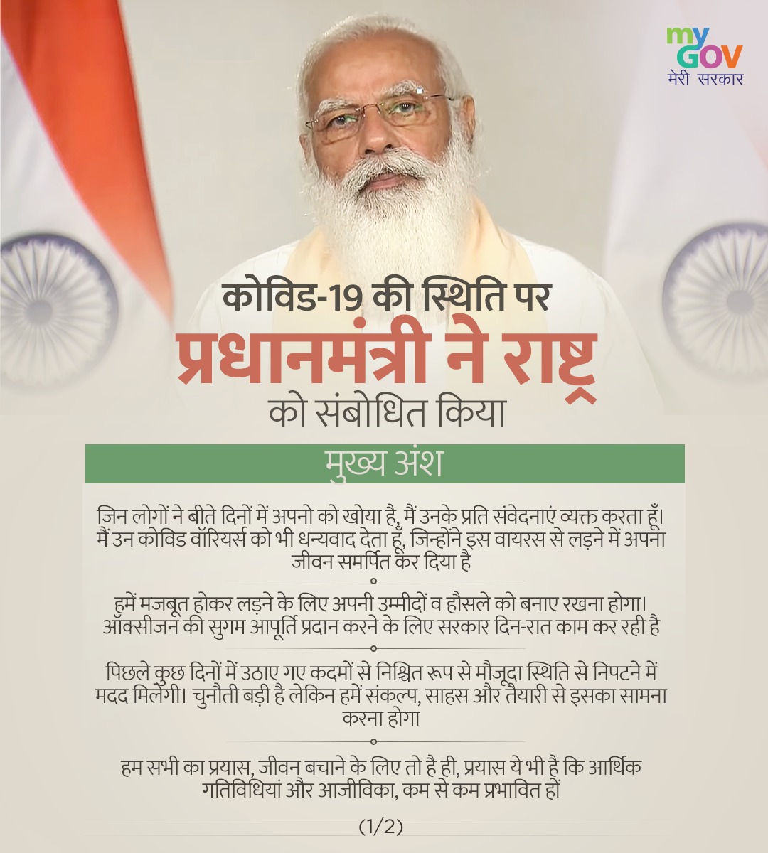 नई दिल्ली. प्रधानमंत्री नरेन्द्र मोदी ने रात 8 बजकर 45 मिनट पर कोरोना संकट की मौजूदा स्थिति को लेकर देश को संबोधित किया.