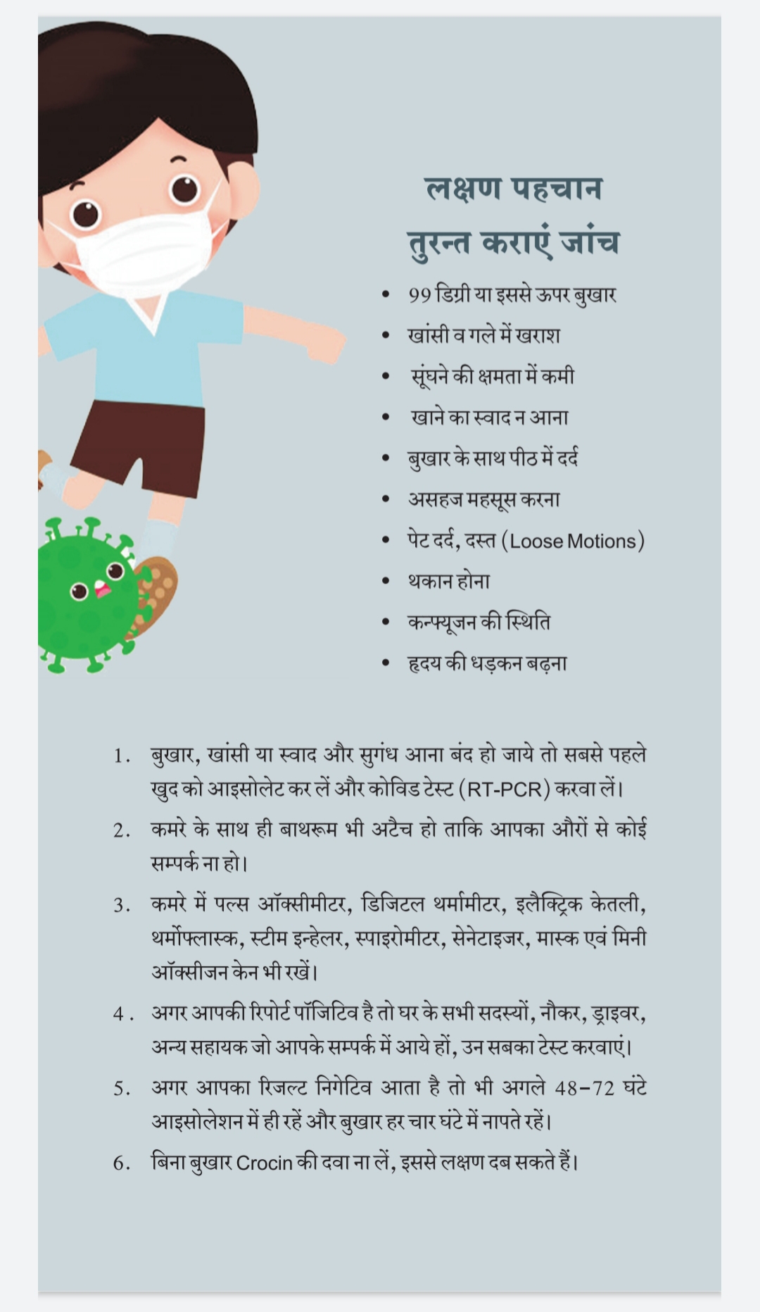 2. नियमित दिनचर्या में साफ सफाई का ध्यान रखें. साफ सुथरे, धुले हुए कपडों, रुमाल का इस्तेमाल करें और सोशल डिस्टेंसिंग के नियमों की पालना करें.