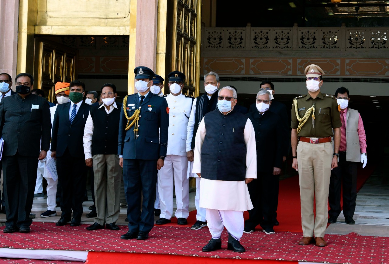 इससे पहले राज्यपाल मिश्र के बुधवार को अभिभाषण के लिए विधानसभा पहुँचने पर विधानसभा अध्यक्ष सीपी जोशी, मुख्यमंत्री अशोक गहलोत, संसदीय कार्य मंत्री शांति धारीवाल, मुख्य सचिव निरंजन आर्य और विधानसभा सचिव प्रमिल कुमार माथुर ने उनका स्वागत किया. विधानसभा के मुख्य द्वार पर राज्यपाल मिश्र को आरएसी की बटालियन ने राष्ट्रीय सलामी दी. राज्यपाल मिश्र ने 45 मिनट में पूरा अभिभाषण पढ़ा.