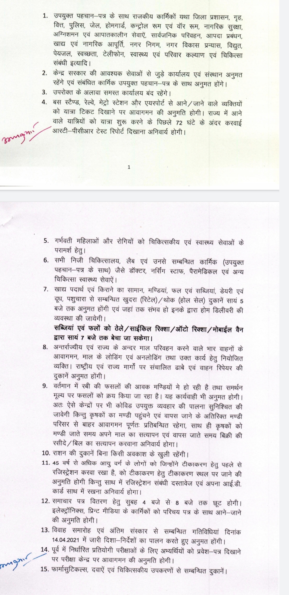 राशन की दुकानें बिना किसी अवकाश के खुली रहेंगी। सब्जियां एवं फलों के ठेले, साइकिल रिक्शा, ऑटो रिक्शा, से शाम 7:00 बजे तक बेची जा सकेंगे। खाद्य पदार्थों में किराने के सामान, मंडिया, फल एवं सब्जियां, डेयरी, दूध, पशु चारे से संबंधित खुदरा थोक दुकानें शाम 5:00 बजे तक अनुमत होगी। जहां तक संभव हो इनके द्वारा होम डिलीवरी की व्यवस्था करने के निर्देश दिए गए हैं। बाकी नियम वीकेंड कर्फ्यू वाले ही लागू रहेंगे।