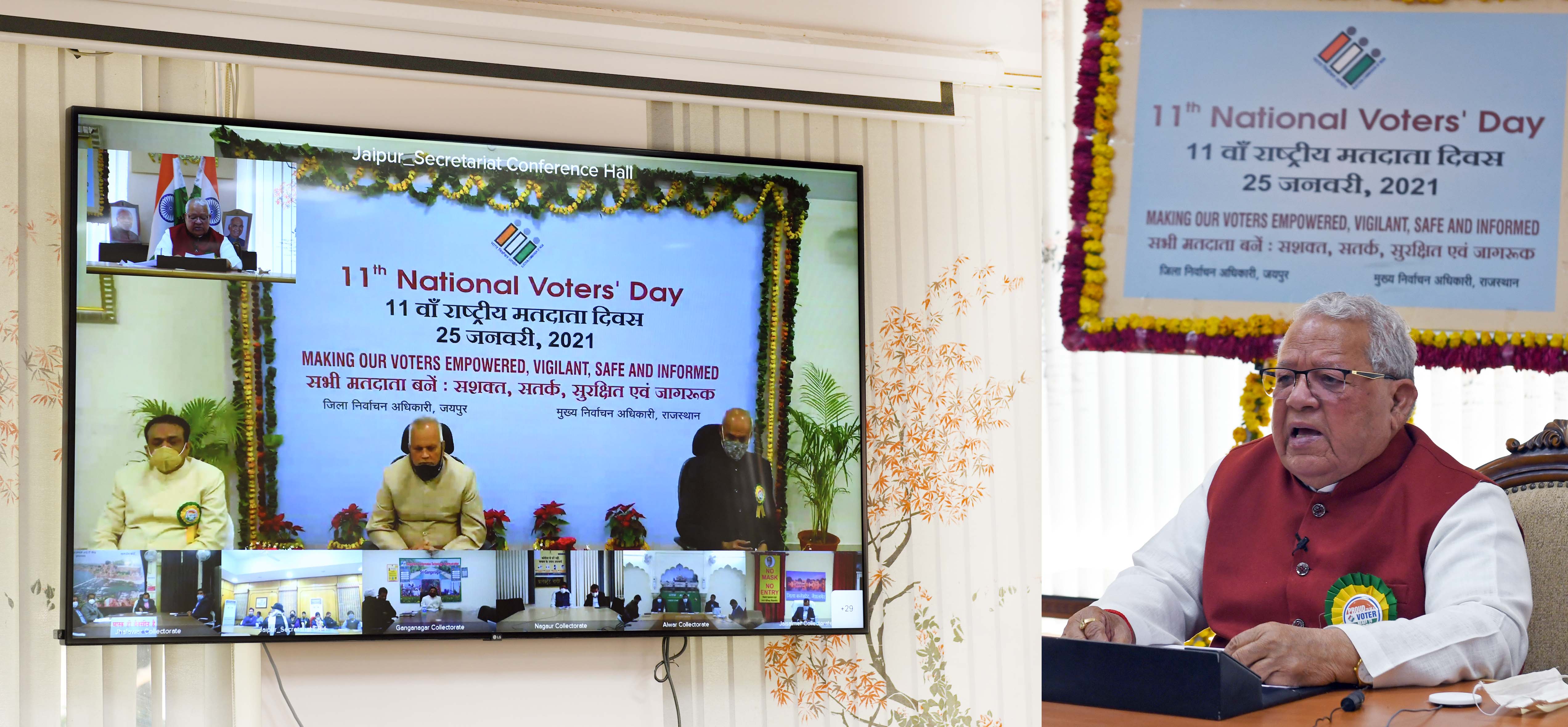 जयपुर. राष्ट्रीय मतदाता दिवस के मोके पर इस क्षेत्र में बेहतर कार्य के लिए जयपुर के शासन सचिवालय में आयोजित वर्चुअल कार्यक्रम में नागौर के जिला निर्वाचन अधिकारी व जिला कलेक्टर डाॅ. जितेन्द्र कुमार सोनी को सम्मानित किया गया. उन्हें वीसी के माध्यम से राज्यपाल कलराज मिश्र, मुख्य निर्वाचन आयुक्त प्रेमसिंह मेहरा और राज्य के मुख्य सचिव निरंजन आर्य ने सम्मानित किया. उन्हें नागौर जिला निर्वाचन अधिकारी के रूप में यह सम्मान दिया गया. राजस्थान के बोल्ड, डायनामिक और यंग ऑफिसर के तौर पर पहचाने जाने वाले सोनी लगातार नवाचारों की दिशा में प्रयासरत रहते हैं और उसी कड़ी में उन्हें एक बार फिर राज्य स्तर पर सम्मानित किया गया. सोनी इससे पहले भी अपने बेहतर कार्य के चलते कई राज्य स्तरीय और राष्ट्र स्तरीय पुरस्कारों से सम्मानित हो चुके हैं.