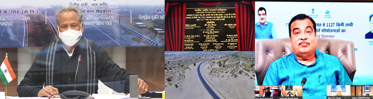 गहलोत गुरूवार को मुख्यमंत्री निवास पर 8 हजार 500 करोड़ की लागत से 1127 किलोमीटर लंबी 18 सड़क परियोजनाओं के वीडियो कांफ्रेंसिंग के माध्यम से शिलान्यास एवं लोकार्पण समारोह को संबोधित कर रहे थे. कार्यक्रम में केन्द्रीय सड़क परिवहन एवं राजमार्ग मंत्री नितिन गडकरी ने इनमें से 11 परियोजनाओं का लोकार्पण एवं 7 परियोजनाओं का शिलान्यास किया। मुख्यमंत्री ने कहा कि विकास परियोजनाओं में राजनीतिक आधार पर कोई भेदभाव नहीं होना चाहिए। ‘हर कलम सिर्फ जनहित में चले‘ हमारी सरकार इसी सोच के साथ काम कर रही है। इसी भावना से हमने बीते बीस सालों में जब-जब भी हमारी सरकार रही प्रदेश में गांव-ढाणी और सुदूर सीमावर्ती क्षेत्र तक सड़कों का मजबूत नेटवर्क तैयार करने का काम किया। मुख्यमंत्री ने प्रदेश में राष्ट्रीय राजमार्ग निर्माण की परियोजनाओं को गति देने के लिए गडकरी को धन्यवाद दिया। उन्होंने कहा कि राजस्थान में रोड इन्फ्रास्ट्रक्चर के विकास के लिए गडकरी की गहन सोच यह दर्शाती है कि वे किस प्रतिबद्धता से अपने काम को अंजाम देने में लगे हैं।
