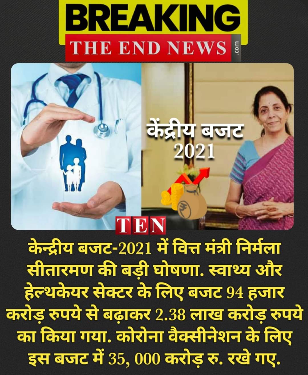 केन्द्रीय बजट-2021 में वित्त मंत्री निर्मला सीतारमण की बड़ी घोषणा. स्वाथ्य और हेल्थकेयर सेक्टर के लिए बजट 94 हजार करोड़ रुपये से बढ़ाकर 2.38 लाख करोड़ रुपये का किया गया. कोरोना वैक्सीनेशन के लिए इस बजट में 35, 000 करोड़ रु. रखे गए.